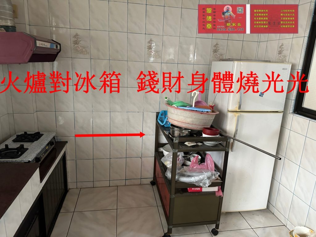 問題本質​:竈屬「火」,水槽屬「水」,兩者直對引「水火交戰」,易導致家人爭吵、腸胃不適,且「火氣被水沖散」不利家運。
